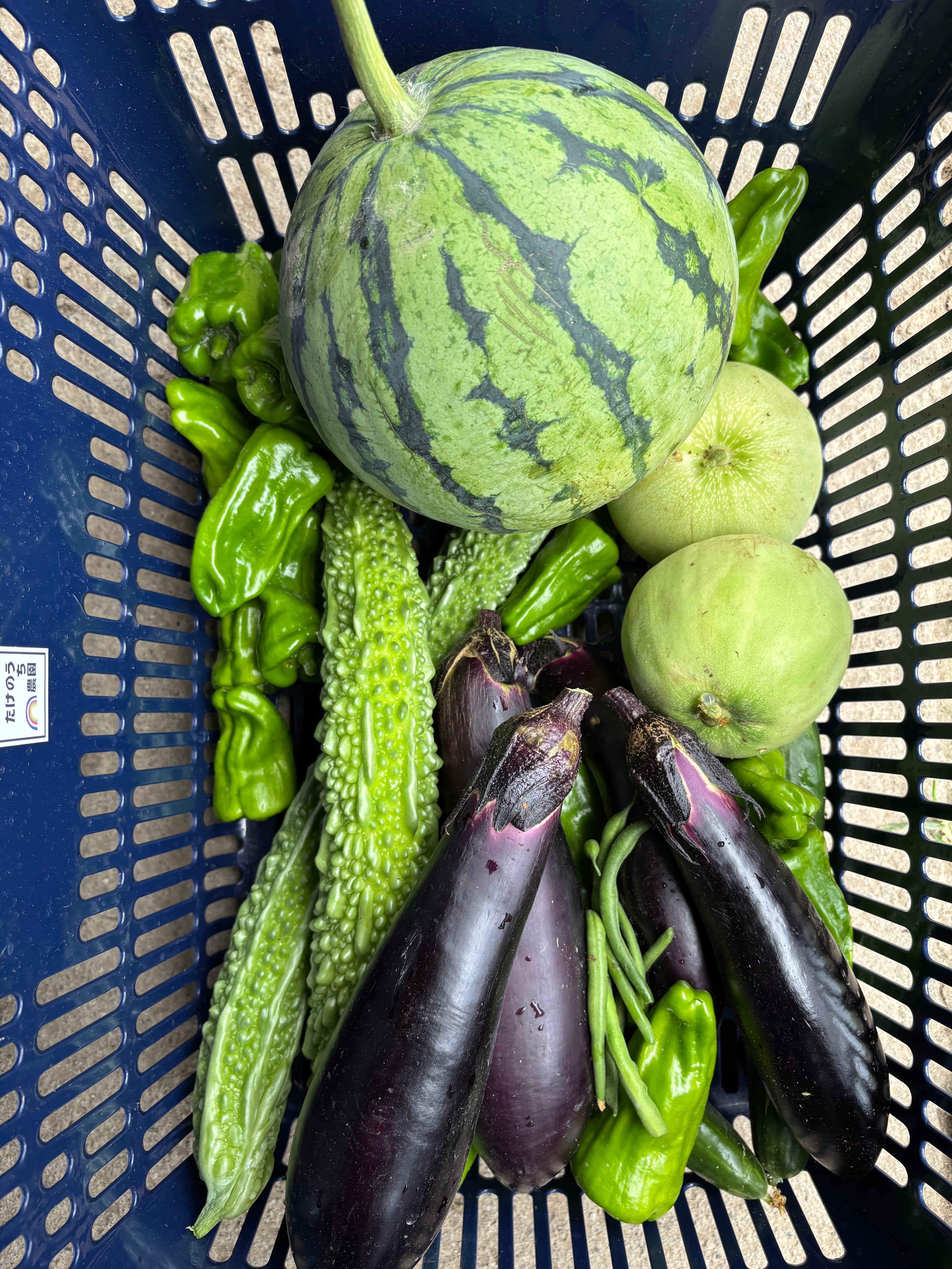 事前予約・決済で、予約日時にご来園して『(農園が用意した)買い物カゴ1カゴ』へ詰め放題で野菜をテイクアウトできます。